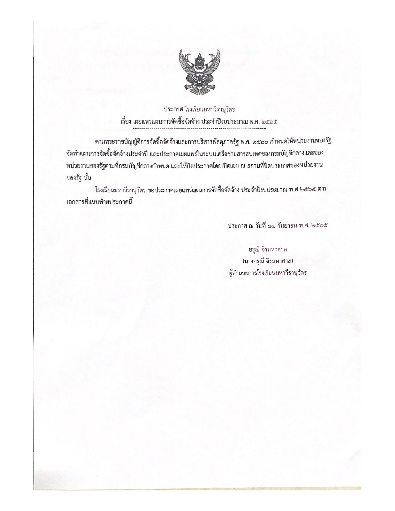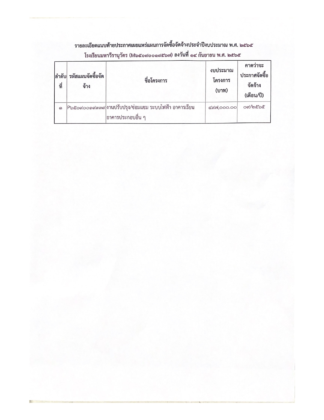 แผนจัดซื้อจัดจ้างประจำปีงบประมาณ พ.ศ. 2565